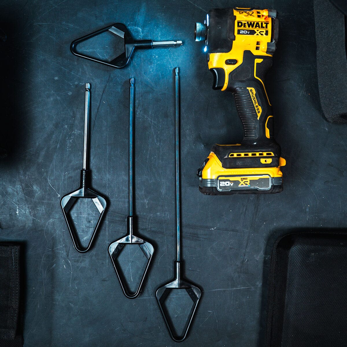 The only mixer on the market with a patent pending design to be used in any quick disconnect shaft such as an impact gun!